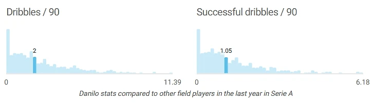Когда же Данило разгоняет атаку, а он любит затяжные рейды причем не столько с помощью финтов (в среднем он делает всего два дриблинга за 90 минут).