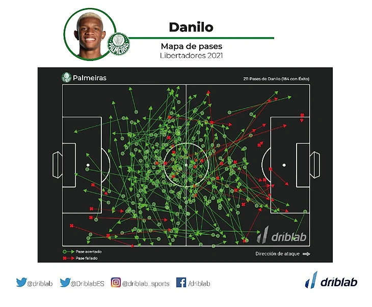 В Бразилейрао 2021 года Данило в среднем делал 41,29 передач за матч с точностью в 88,43%.