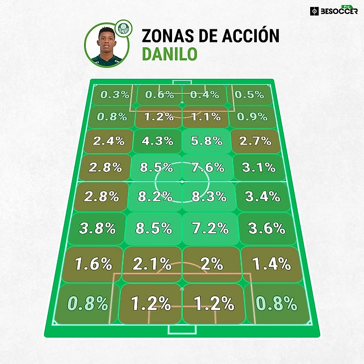 У Абела Феррейры любой футболист центра поля это в первую очередь универсал. Тренер всегда требовал от своих игроков возвращать мяч как можно быстрее – этот футбол хорошо усвоил и Зе Рафаэл, раскрывшийся по-новому у португальца. И Данило, несмотря на своё низкое расположение по схеме, любит вступать в высокий прессинг: Более половины своих заборов владения бразилец совершает на половине поля соперника.