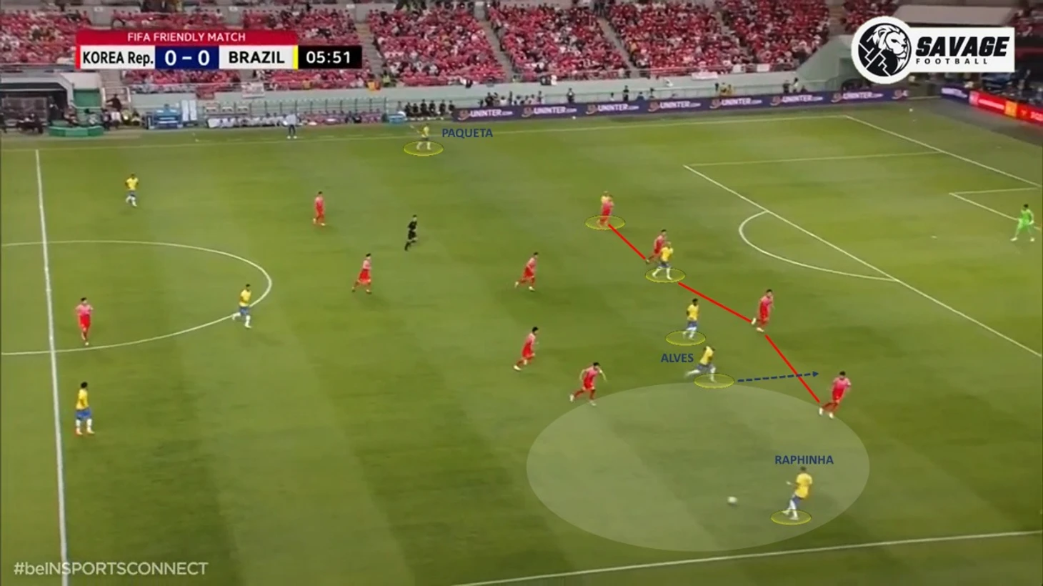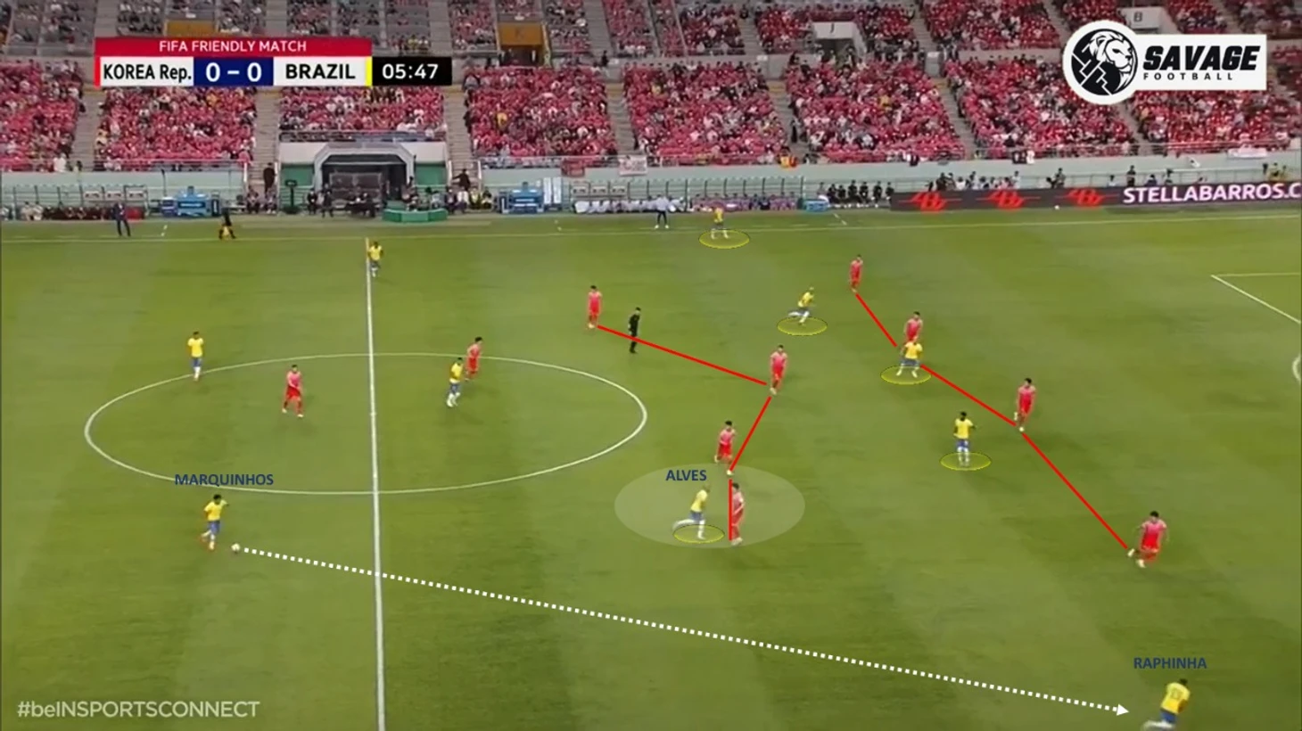 Чего не скажешь о правом фланге. Я писал, что Соном будет в первую очередь тестироваться самый опытный из всех принимавших участие в матче, и по итогу 90 минут я не получил внятного ответа-так ли нужен Алвес сборной даже в роли дублера Данило. Опыт и мотивация? Возьмите его в тренерский штаб в любом качестве, но на поле. Да,в расстановке Тите правый латераль это во многом фигура созидающая, артикулятор, распасовщик, позволяющий Рафинье находиться максимально высоко и свободно..
