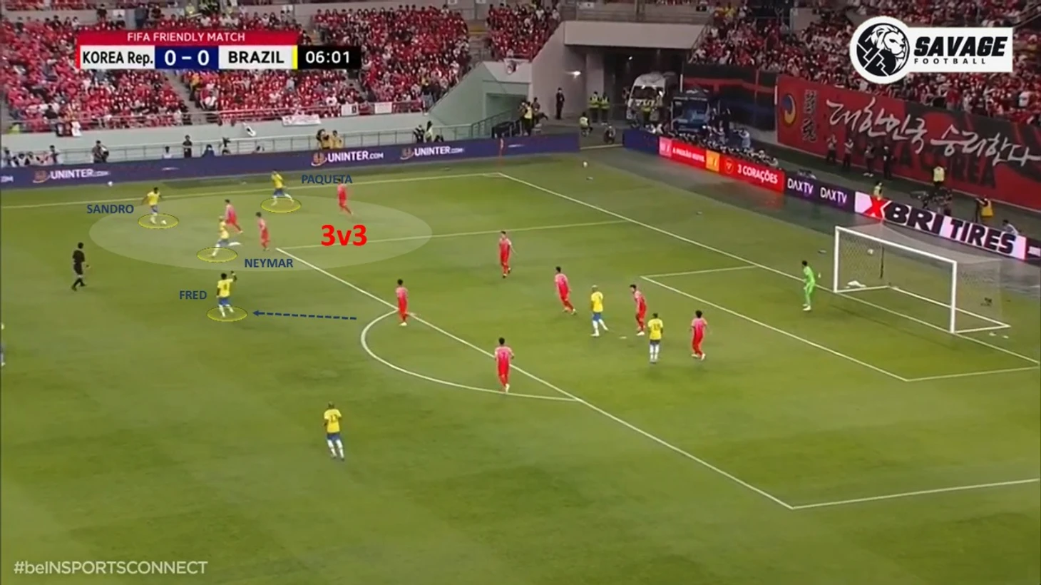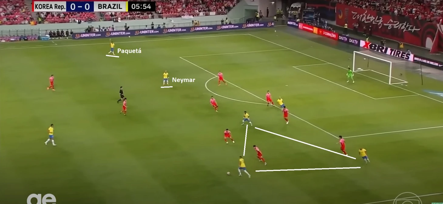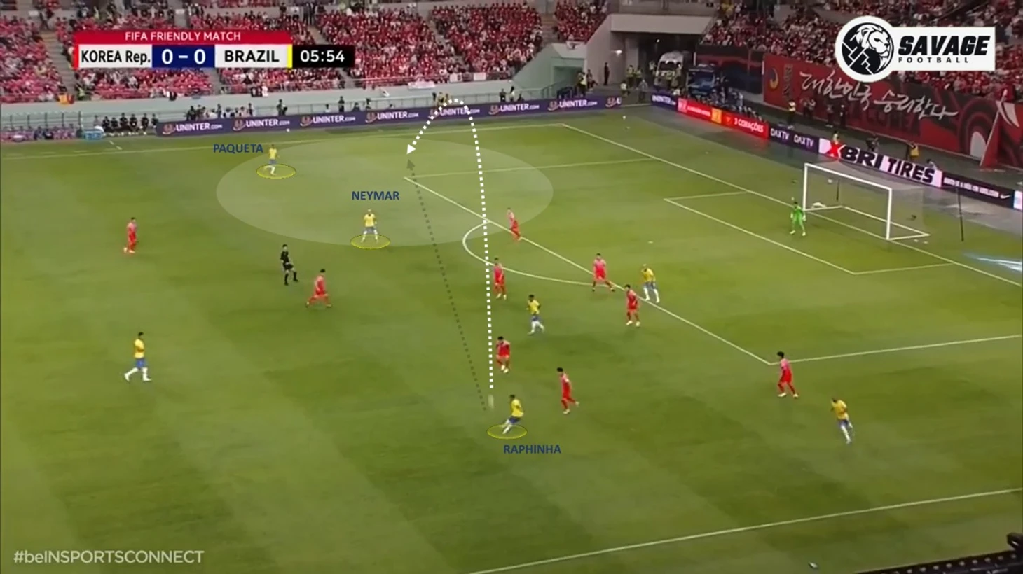 К точки подошел Неймарито и поиграв в кошки-мышки с вратарем тихонечко катнул в противоположный даже не угол, а сектор ворот. Ох, кому как, а такая манера исполнения пенальти как бы не аукнулась в решающий момент в каком-нибудь решающем матче. А так Неймар (травмированный по словам тренерского штаба) выдал очередной концерт в роли десятки сборной Создано 8 моментов, из них 2 голевых, 4 успешные обводки из 4, 5 из 6 длинных передач достигли адресата. Ну и 2 гола, пусть и с пенальти. При этом казалось (визуально) что форвард ПСЖ немного себя бережет и не включается на полную. Впрочем и этого было достаточно для Кореи.