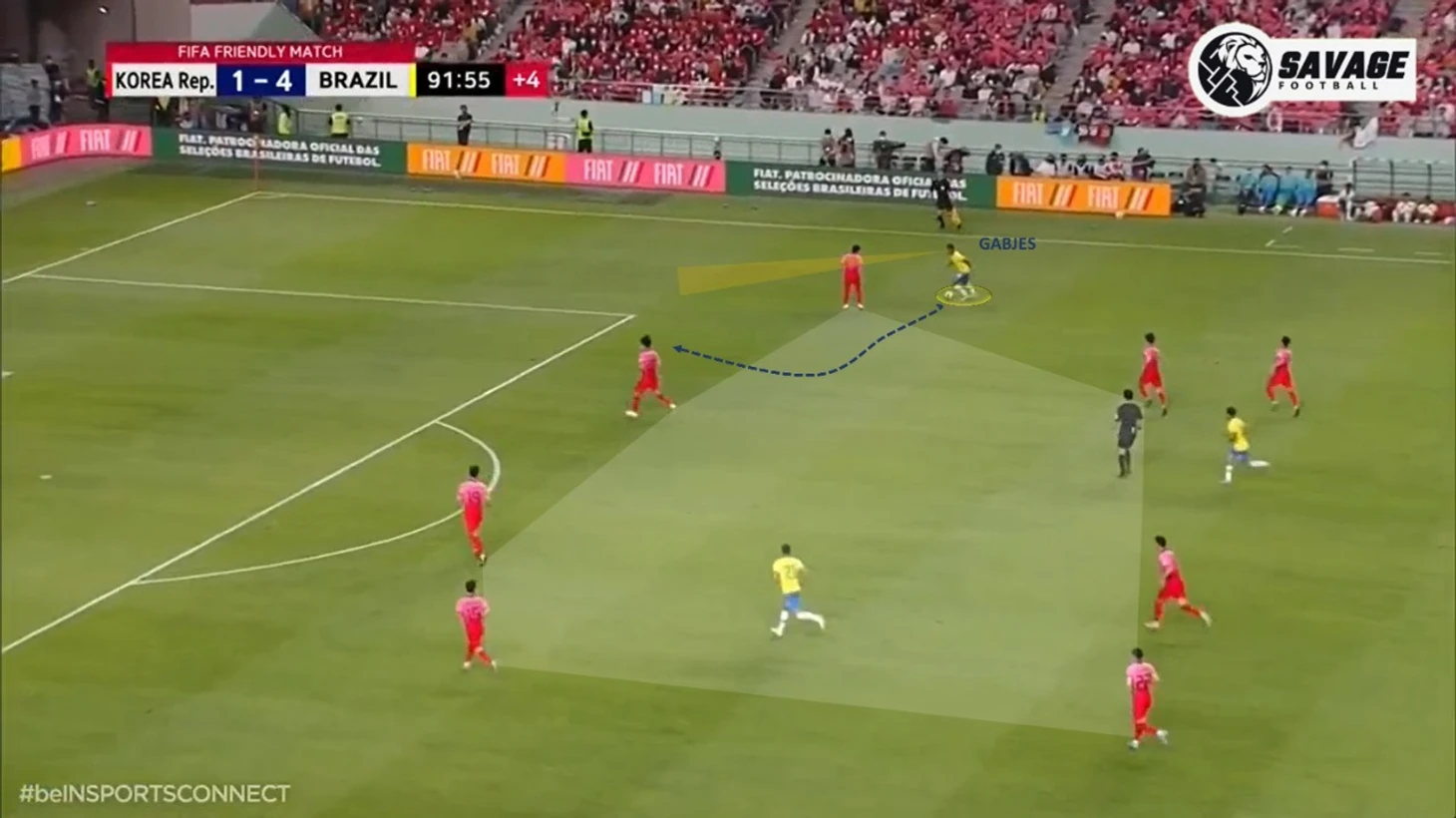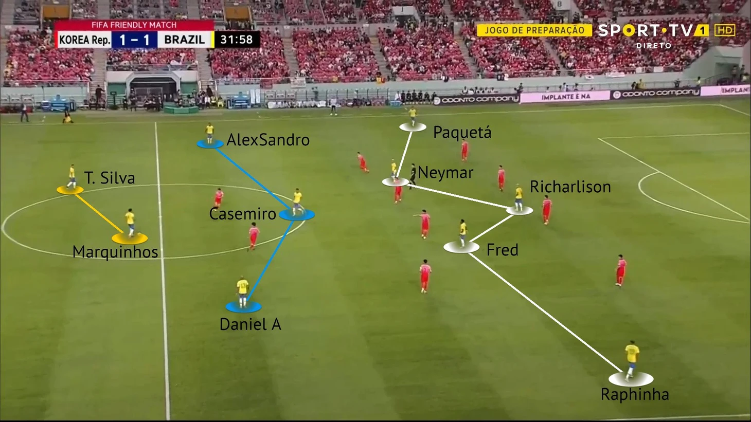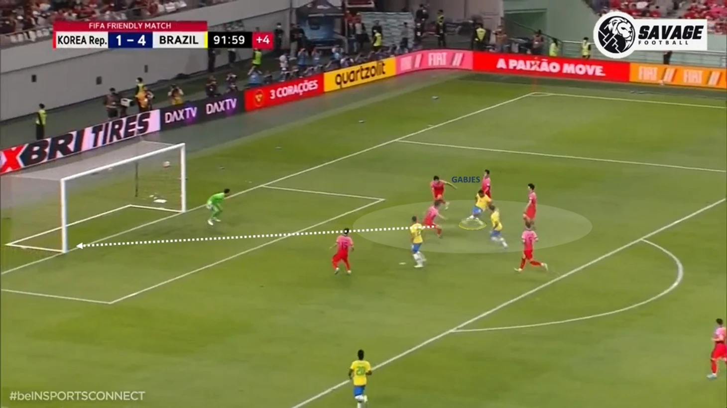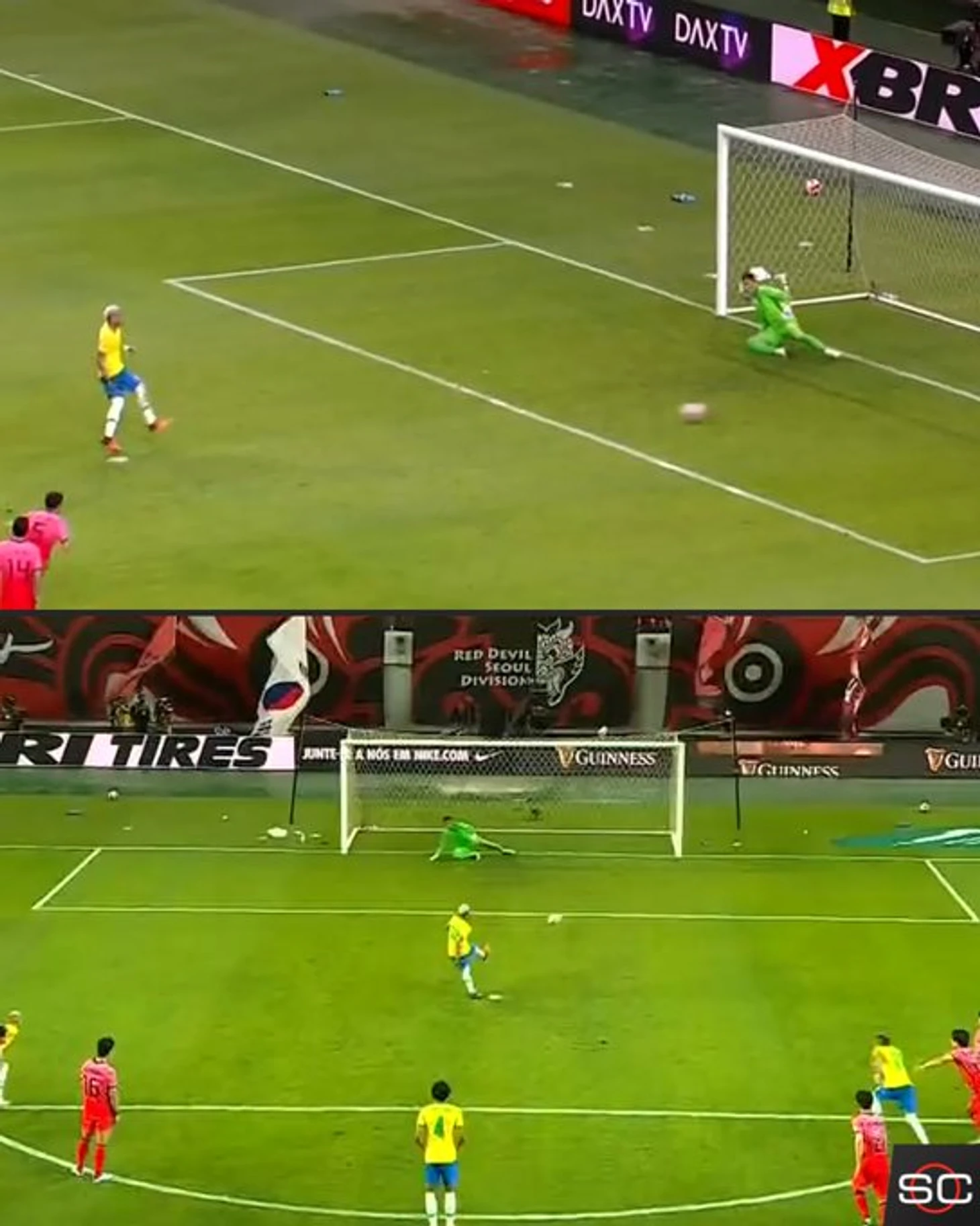 Средняя-средняя, но свой гол они честно заковыряли. Точнее воспользовались одной из двух слабостей обороны Бразилии. Тиаго Силва в данном эпизоде очень легко дал себя оттеснить корпусом форварду корейцев и Уэвертон лишь наблюдал мяч в дальнем углу своих ворот. Конечно это была минутная слабость, в общем-то Силва провел довольно уверенный матч, но она стоила гола. Чуть о Уэвертоне. Вообще вратарь "Палмейраса" провел очень хороший матч, по серьезному вступив в игру раза 3,не считая гола, и выручив команду. Не покривлю душой если скажу что Селесао повезет в Катар самую сильную вратарскую бригаду среди всех участников. Да, общий и индивидуальный класс не всегда показатель-Алиссон вон в России сборную ни разу не выручил-но все трое набрались победного опыта на 2 последних Копах и в отборочном турнире. Любой из них может спокойно заменить любого без потери качества.
