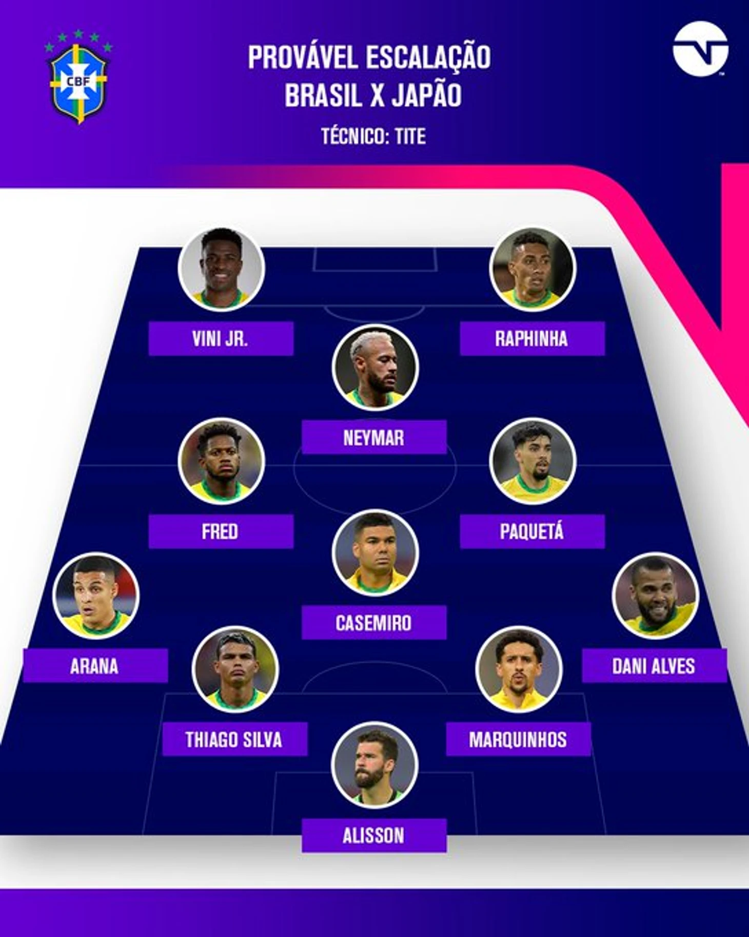 В понедельник Япония и там Тите вроде как готовит замены-вместо Уэвертона, Сандро и Ришарлисона в манишках титуларов занимались Алиссон, Арана и Вини. Значит Пакета возвращается в центр и вместе с Неймаром играют ложных девяток. Эдер Милитао тоже в строю и имеет шансы выйти с первых минут.