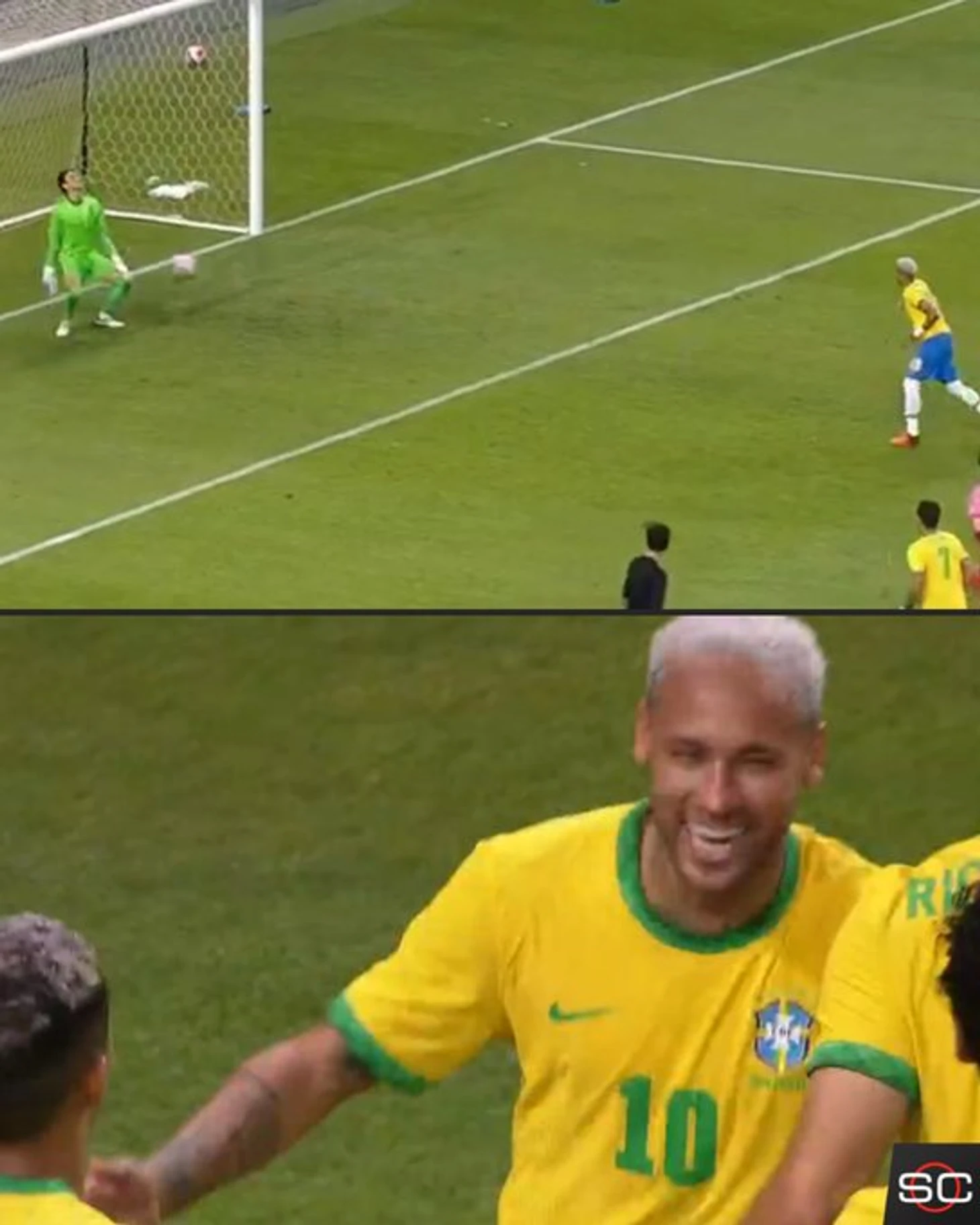 Снова к точке подходит Ней и снова куражится. А Сандро сделал по сути три первых гола Бразилии в этом матче.