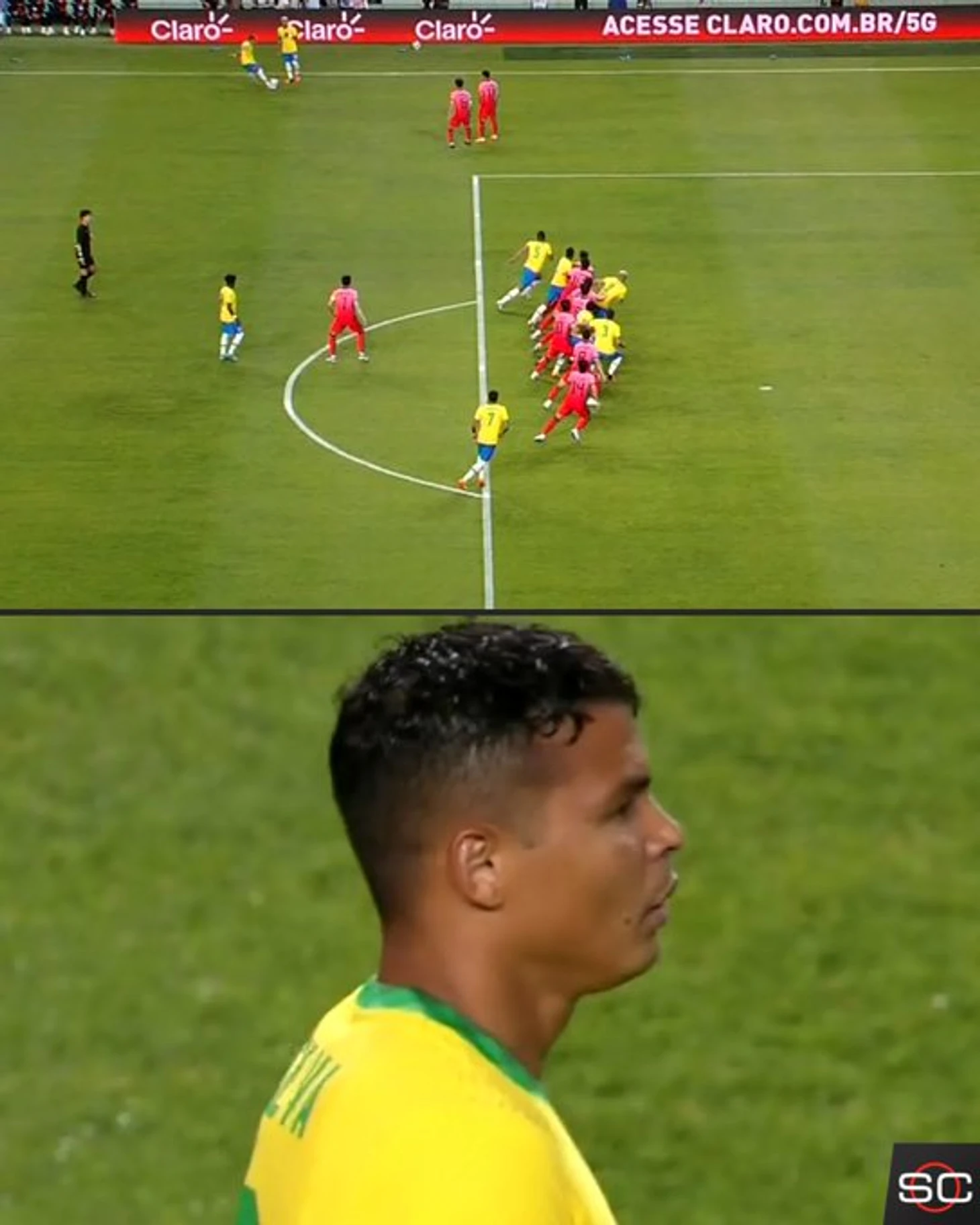Матч начался довольно живо и уже на второй минуте мяч затрепыхался в корейской сетке. Одно но- пара бразильцев, включая замыкающего Тиаго Силву, находились к воротам ближе всех.