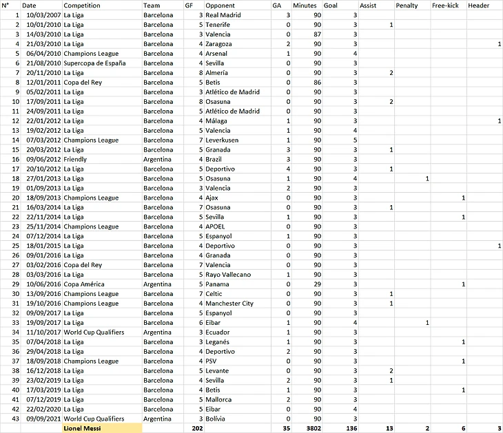 Месси-43 (в них 6 голов со штрафных и 3 головой)