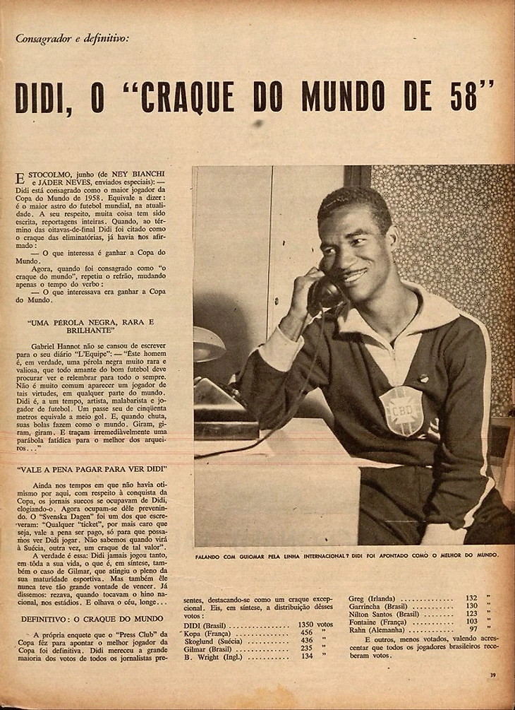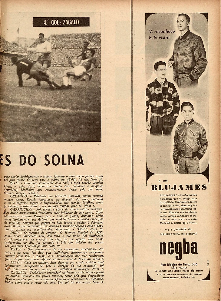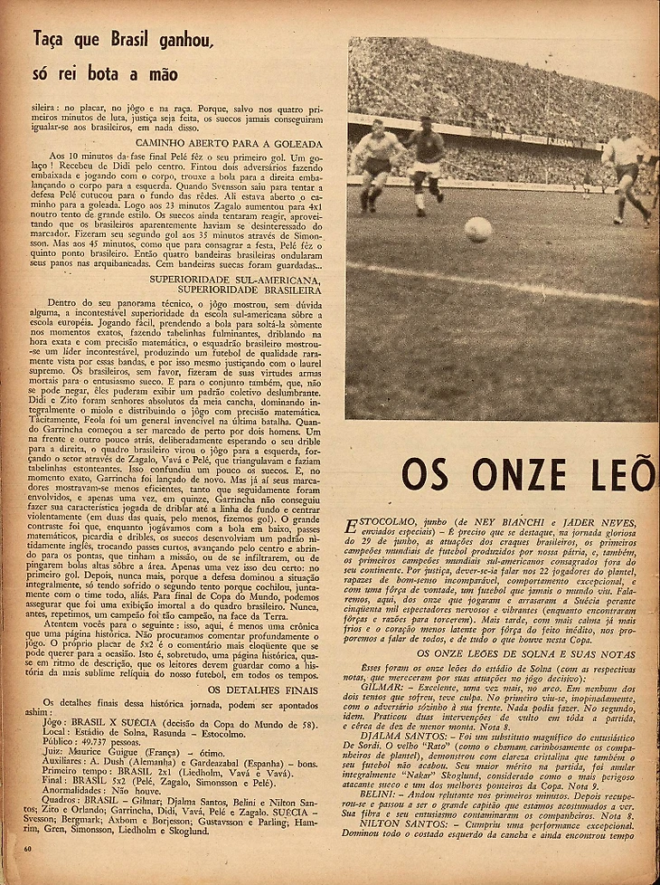 А вот такие же оценки за чемпионат мира 1958 от той же самой Manchete Esportiva.