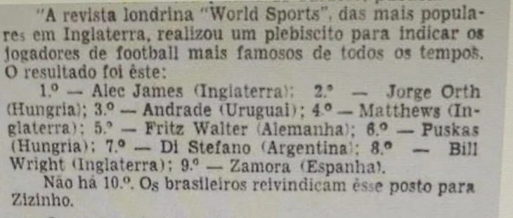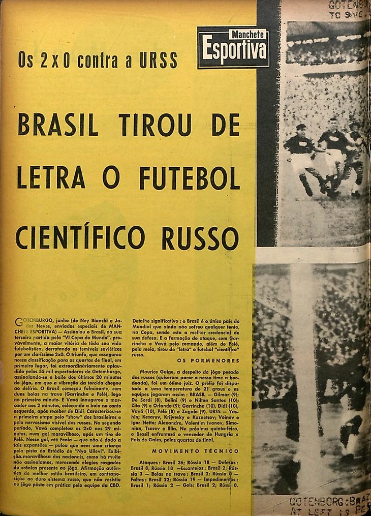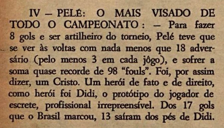 Если же мы говорим о бразильских звездах-Пеле, Зико, Гарринче и прочих, то за основу берутся «Jornal dos Sports» и «O Estado de Sao Paulo» - лучшие источники тех лет. В качестве третьего варианта обычно используется «Correio da Manhã».