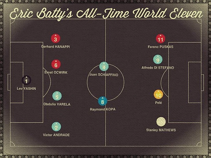 Даже немецкая федерация футбола не дает и близко тех цифр. 39 и 635-неплохой такой разбег. А отгадка в одной фразе из Вики-"Он является самым результативным бомбардиром официальных матчей в зарегистрированной истории согласно RSSSF." Да, они позиционируют себя как крупнейшее сообщество статистиков, но простите-есть хоть одно подтверждение ваших слов по многим именам-сканы,ссылки? Нет. Согласитесь, когда беретесь за такое смелое утверждение, нужно серьезно его подкреплять, правильно? Почему мировые СМИ даже 50-ых ни сном ни духом о чудо-бомбардире из Германии? Шароши, Меацца, Шинделарж, даже Орт и те имели отличную довоенную прессу и статусы одних из лучших, про Хельмхена тишина. В подтверждение символическая сборная мира за полвека, версия 1954 года