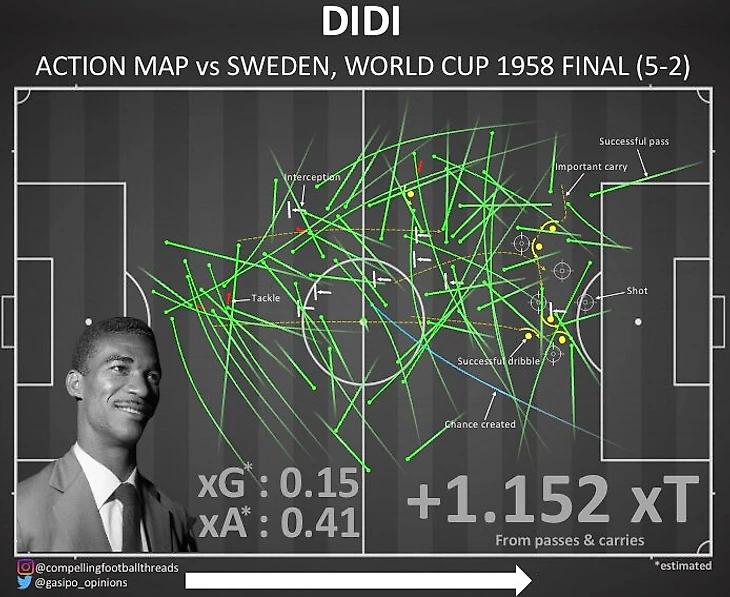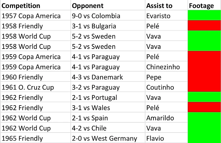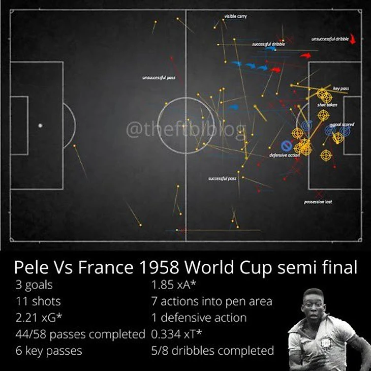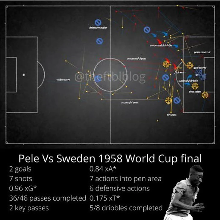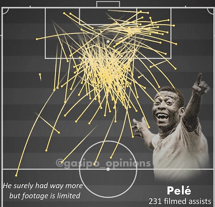 Была конечно попытка визуализировать голевые передачи Пеле на основе видеоматериалов, но подтверждение там нашло лишь чуть больше половины.