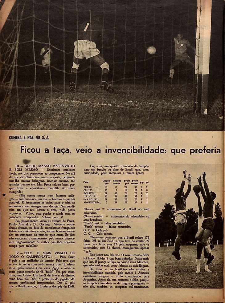 А вот еще одна находка на тему статистики. И заодно она частично отвечает на вопрос-почему Пеле не выиграл ни одной Копы? И показывает нам уровень жесткости того футбола в цифрах, а не в воспоминаниях ветеранов или мемуарах, написанных в лучшем случае под диктовку журналистами.