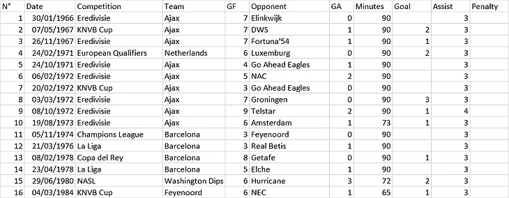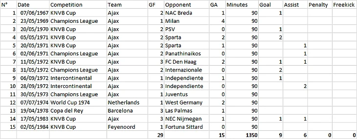 Так на что же я и другие авторы опираются? На периодику тех лет. А она довольно дотошная и подробная. Например, как вы знаете, и я в одном из материалов писал об Абе Ленстре,звезде голландского футбола эпохи "до Кройфа"-его цифры были известны еще в 50-60-ые, но подробную раскладку дал голландский старатель, любитель футбола Эйб Ян Кейперс, перелопативший цифровой архив газеты Delpher.nl. Вот ссылка на это исследование