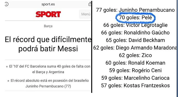 Чушь не чушь... но как широко она распространилась!!! В апреле 2018 спустя два года после появления этого поста, эти данные на голубом глазу публикует испанская Diario Sport, вот тут на полном серьезе уже утверждается, что Месси никогда не стать королем штрафных, так как у Пеле аж 70 голов со стандартов.