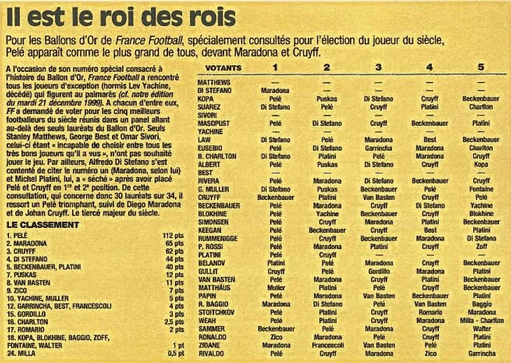 Исторический анекдот. Обладатели Золотого мяча всех сезонов проголосовали в 1999 году за лучшего всех времен.