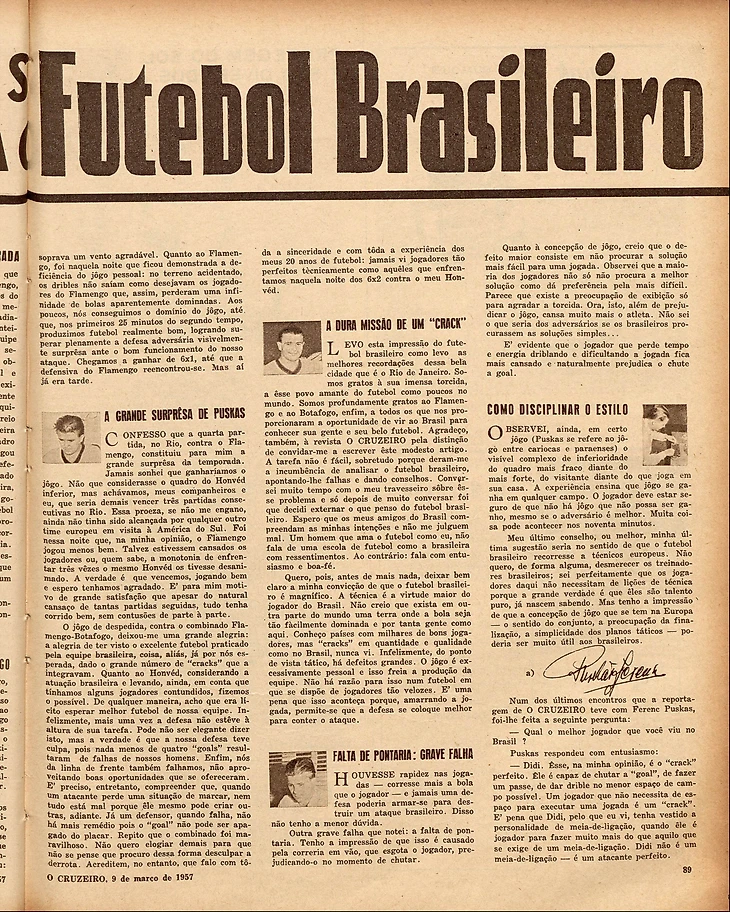 Переведу и первую пробу пера Зизиньо как журналиста как раз в интервью с Пушкашем в 1957