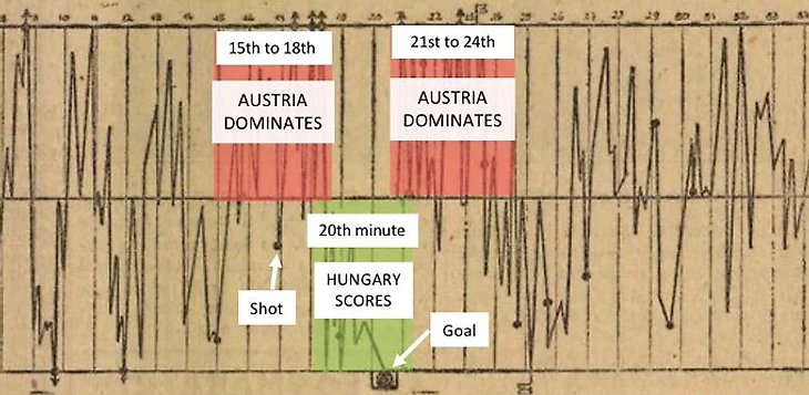 А теперь Венгрия, ноябрь 1922 года, хозяева сыграли товарищеский матч с Австрией, в котором проиграли со счетом 1:2. И что мы видим?