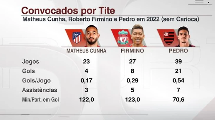 Кунья и Роберто Фирмино? Я сначала подумал, что канал КБФ захватили террористы, по совместительству персональные фаны этих игроков. Но все скорее всего проще и не надо кидать камнями в Тите. Выбор логичный, хоть и на первый взгляд кажется идиотским. У Тите уже есть рабочий план игры с ложной девяткой Неймаром, периодически меняющимся ролями с Пакета, есть запасной вариант с Ришарлисоном на острие. Есть Жезус, находящийся в отличной форме в клубе и если он ее сохранит, то учитывая симпатии Тите к этому игроку и универсализм Габи, место в Катаре он получит.