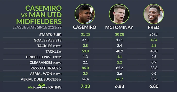 В опорной зоне все без изменений. Каземиро с Фредом в сборной все лучше и лучше понимают друг друга,теперь ещё и в клубе отшлифуют взаимопонимание.