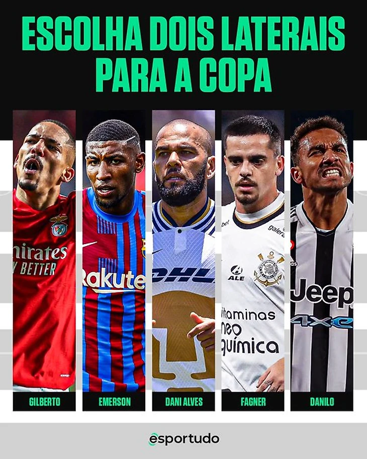 Тите признает, что у него есть варианты правого защитника в Катар: «У нас есть Данило, Дани Алвес, Эмерсон Роял, Эдер Милитао и Жилберто, у которого отличный период в «Бенфике».
