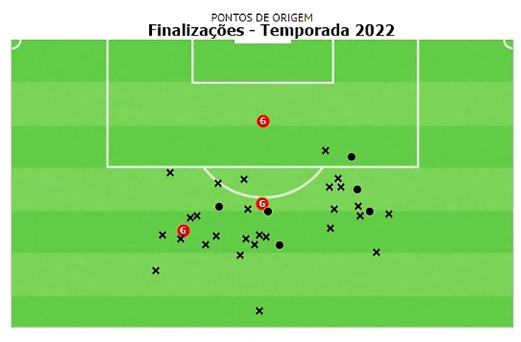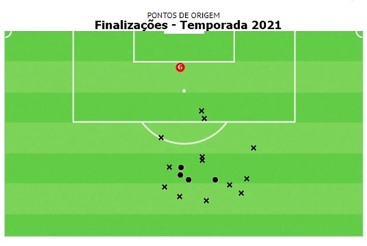 Впрочем, к атакам Андре действительно подключается «один раз из пяти», это не норма для него. Основной креатив повторюсь на Гансо и Ариасе. Куда привычнее – открываться под удар в зоне перед воротами, причём в любых расстановках. Оставлять там Андре – опасно, потому что у него поставленный удар с обеих ног При этом Андре очень любит бить низом на силу. В этом сезоне выросло и количество ударов байяно по чужим воротам, и качество. В 2021 Андре нанес 18 ударов 36 матчах, в этом сезоне уже было 37 в 25.