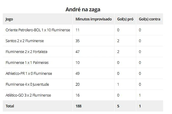 Даже великий Тостао похвалил полузащитника Андре в своей колонке в газете Folha de São Paulo . Он подчеркнул, что полузащитник выделяется как в обороне, так и в нападении. Настоящий тодокамписта.