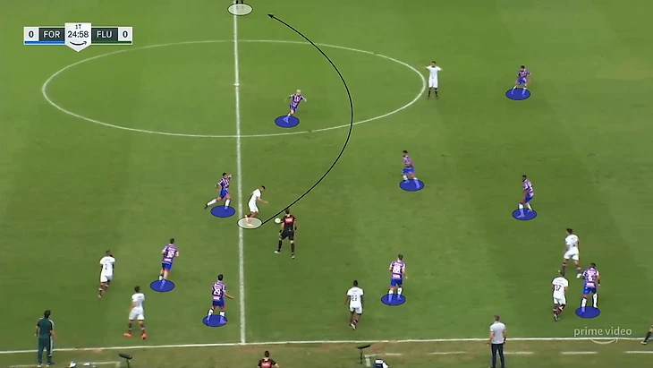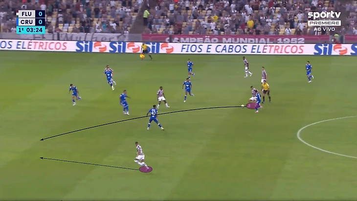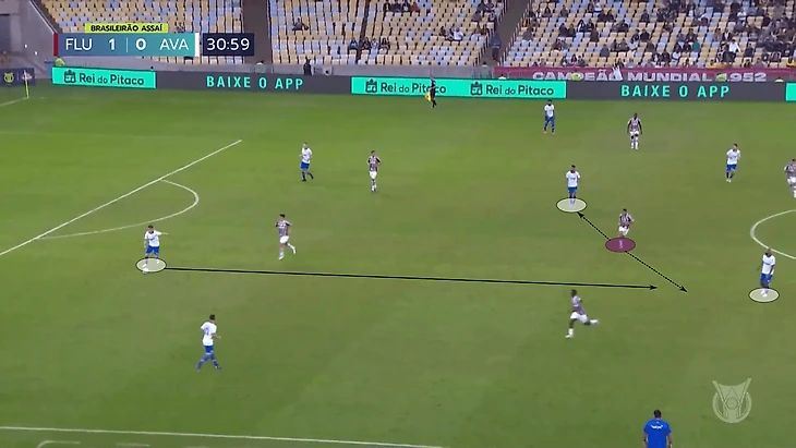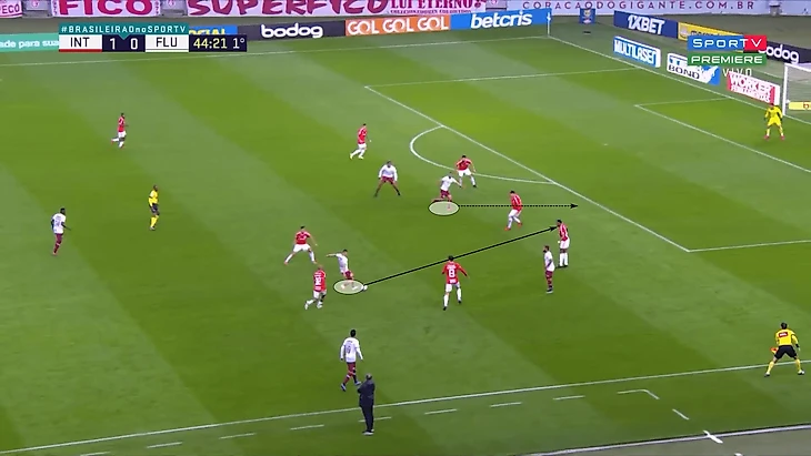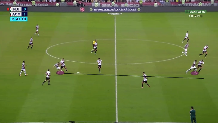 Но Андре любит исполнять и диагонали, они стали его визитной карточкой и вносят разнообразие в его стиль. Шутка ли сказать, байяано и здесь в бразильском топе как по количеству, так и самое главное по качеству таких передач. Если есть качественные забегания по флангам (в «Флуминенсе» их обеспечивают Матеус Мартинс и Ариас, реже – Шавьер), Андре с удовольствием делает перевод. При этом иногда он сам создаёт условия для таких открываний: Андре собирает вокруг себя много соперников (особенно на фланге или в полуфланге), получается перегруз, и байяно оперативно доставляет мяч в противоположную, более свободную зону.