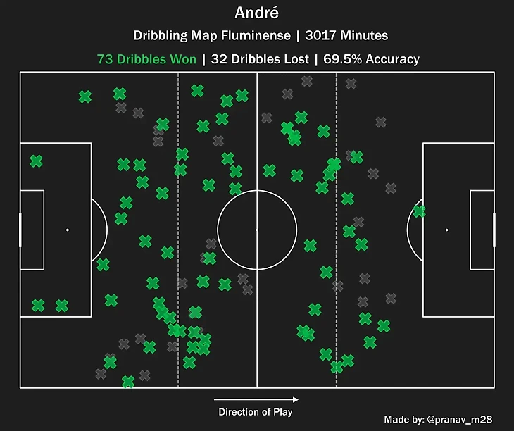 Ведь Андре – один из лучших полузащитников лиги в плане розыгрыша мяча и устойчивости под давлением, он фактически управлял владением, которое стало характерной чертой симпатичного «Флуминенсе» Диниза.