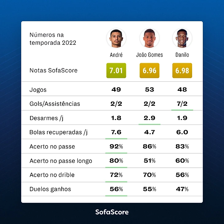 Пасы — ключевой фактор в тактике Диниза, а Андре-ее главный апологет. В среднем он выполняет 63,7 передачи за 90 минут в Серии А 2022 года с впечатляющей точностью 92 %.