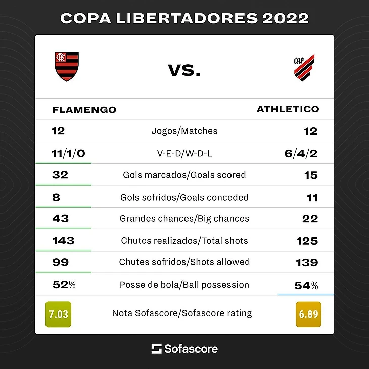 Это девятый раз, когда клубы встречаются в плей-офф за последние 11 лет. Всего в 14 играх было семь побед «Фламенго», пять ничьих и две победы «Атлетико».