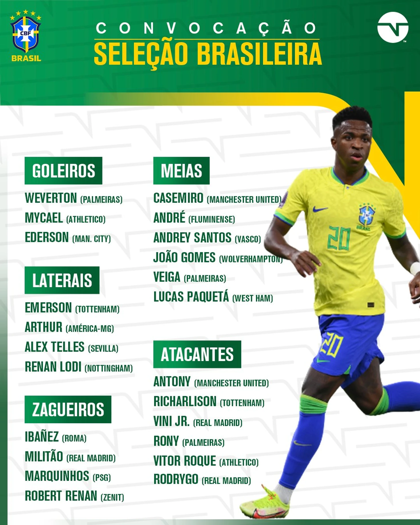 В атаке в отсутствие травмированного Неймара-пропустит минимум 2 недели-сюрпризов 2. Не получил вызов Мартинелли, только возвращающийся на домундиальный уровень, и женившийся Педро.