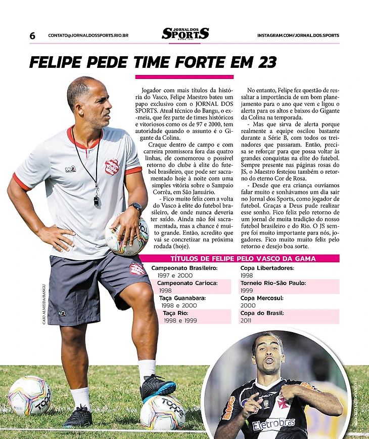 Мне нравятся эти воспоминания, потому что они дают мне более реальное представление о моей траектории как игрока "Васко". Сегодня торсида зовет меня Маэстро, но я не забываю, что я долго таскал пианино прежде чем начать играть музыку. Позже я играл за «Фламенго», с "десяткой" Зико на спине, за "Флуминенсе", за "Палмейрас", за "Атлетико Минейро", за "Галатасарай". Профессиональный футбол таков. Меняется рабочее место. Что не меняется, никогда не менялось и не изменится, так это моя история с "Васко". Это было больше, чем работа. И я уверен, именно поэтому мне удалось найти место в сердцах болельщиков клуба, что наполняет меня радостью.