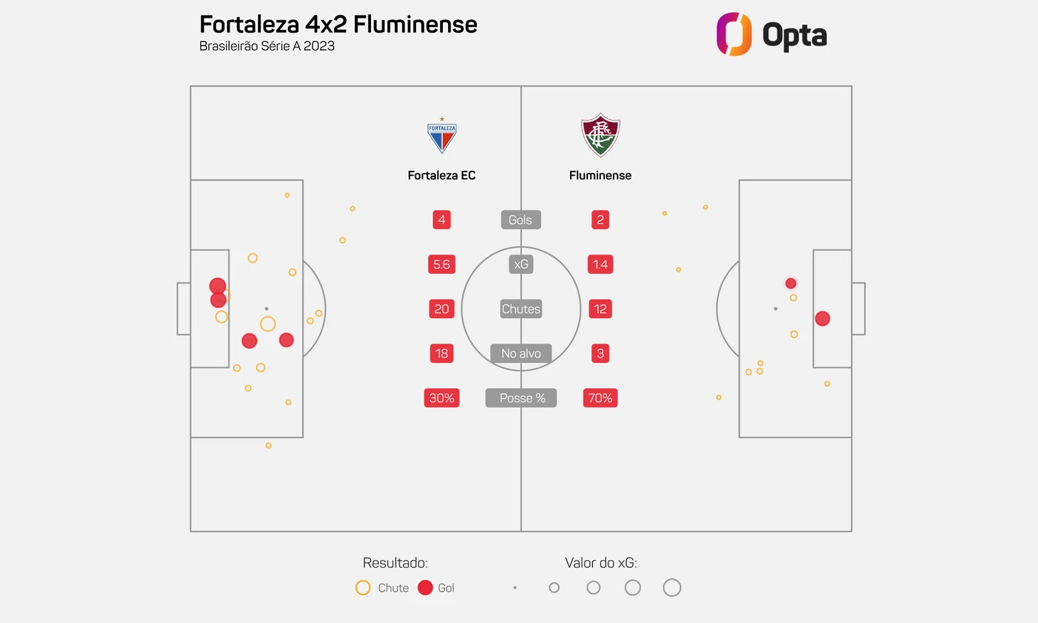 А всего «Форталеза» нанесла 18 ударов по воротам «Флуминенсе». Это самый высокий показатель в одном матче Бразилейрао по данным Opta (с 2013 года).