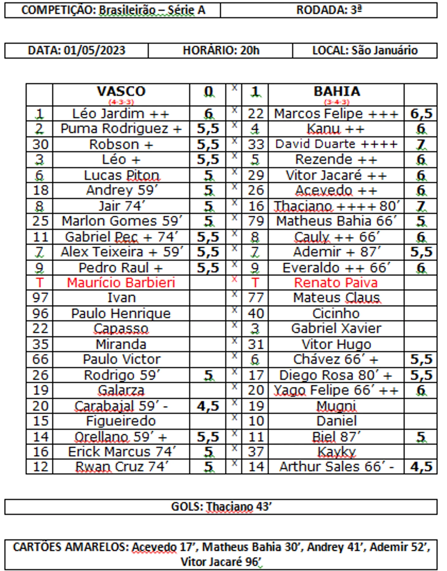 Огорчил «Васко» после двух довольно неплохих туров. Но «Баия» исторически неудобный соперник-вот уже пять игр против них «Васко» не может выиграть-3 поражения при 2 ничьих. До этого еще была серия из пяти игр без побед в период с сентября 2001 г. по июль 2011 года.