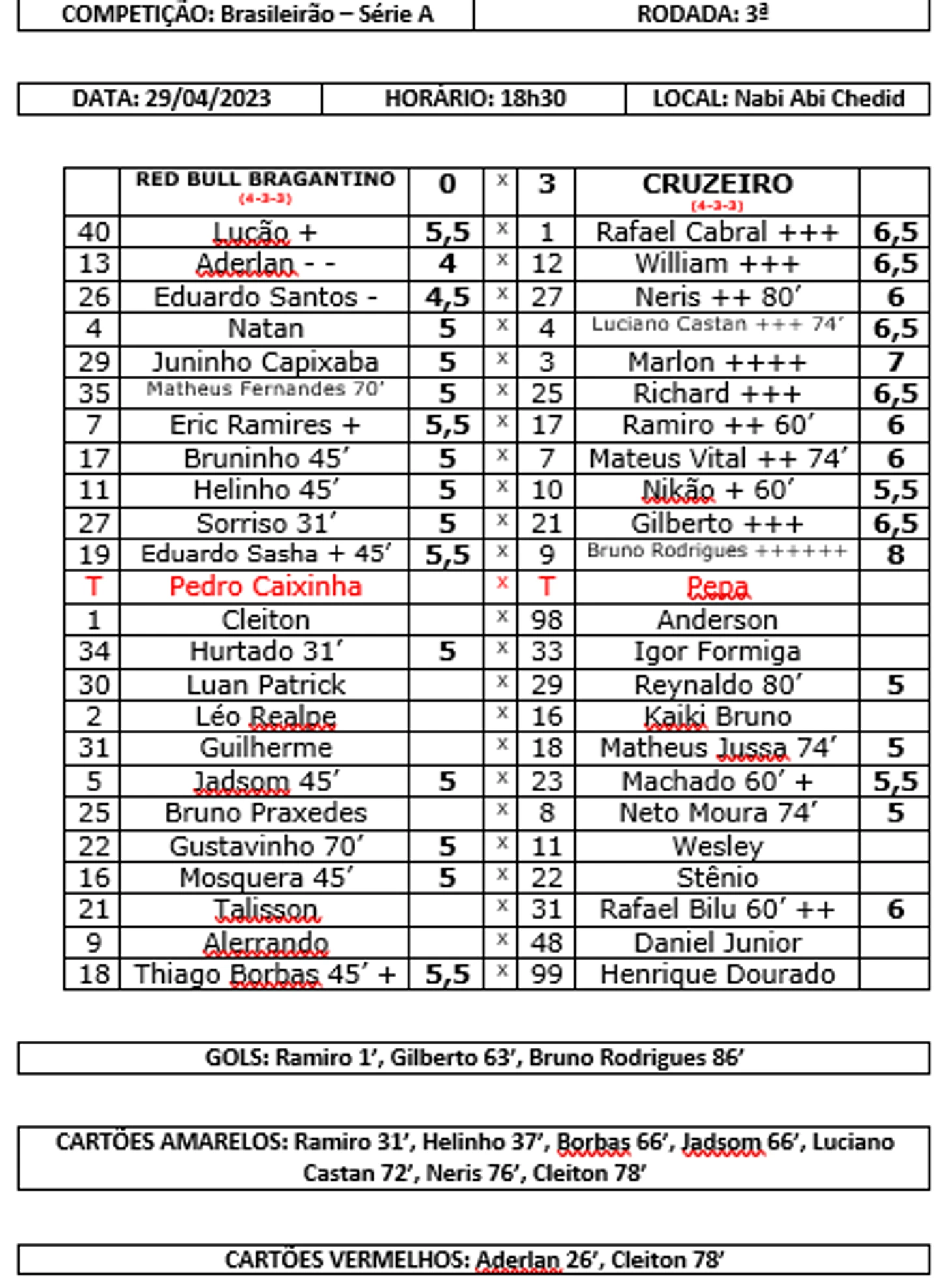 "Брагантино" дома получил оплеуху от "Крузейро", а Интер с минимальным счетом победил "Гояс", забив свой тысячный гол в трехочковую эпоху (с 2003)