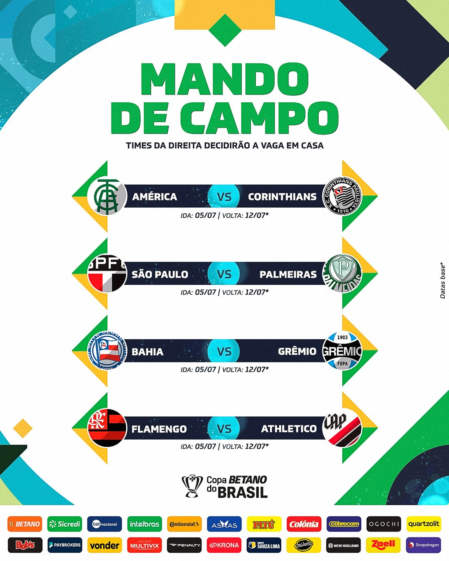 Классико Палмейрас-Сан-Паулу и вероятный выход на "Коринтианс", а в другой сетке прошлогодние финалисты Либертадорес после очных дуэлей выйдут на триумфаторов прошлогодней Серии В. Матчи пройдут 5 и 12 июля.