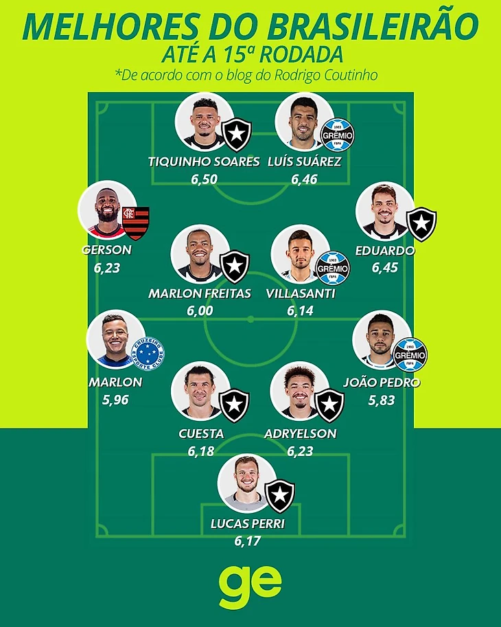 Ну и отметим индивидуально лучших игроков. Символическая сборная по итогам 15 туров по оценкам Глобо.