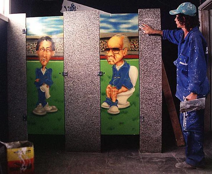 Мое мнение -Загалло создав в хорошем смысле монстра в период 1996-97 годов, умудрился при помощи Зико (для меня до сих пор загадка его назначение и необходимость в той команде, ну не оборону он приехал настраивать это точно) за три месяца до ЧМ спустить в унитаз почти все результаты своего труда. Так что на шаржи Ромарио на дверях туалетов в своем баре в общем-то грех жаловаться.