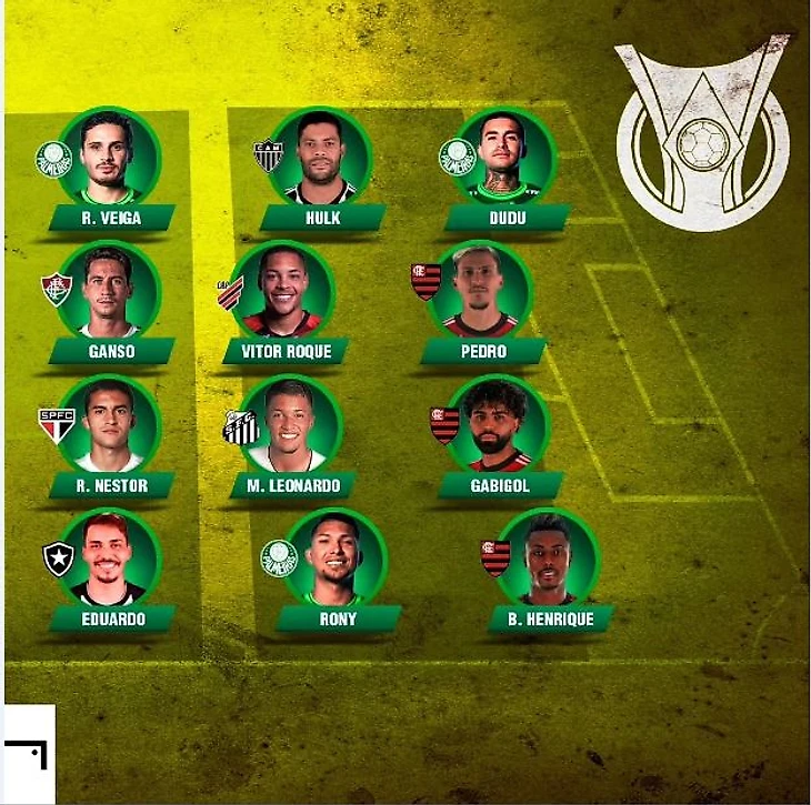 Meio-campistas: André (Fluminense), Bruno Guimarães (Newcastle), Casemiro (Manchester United), Joelinton (Newcastle) e Raphael Veiga (Palmeiras);