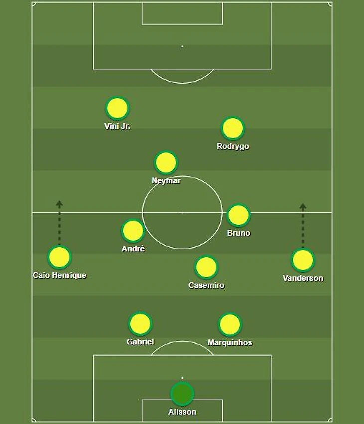 Уэвертон, Тиаго Силва, Милитао (травма), Бремер, Дани Алвес (арестован), Алекс Сандро, Алекс Теллес, Фред, Фабиньо, Лукас Пакета (под следствием), Эвертон Рибейро, Рафинья, Габриэл Жезус (травма) Педро.