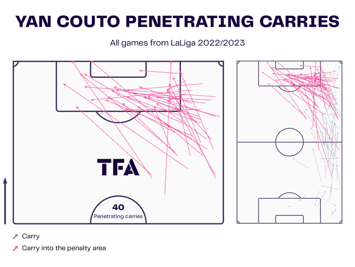 За Яном Коуто слежу давно. Яркое имя в команде, взявшей МЧМ до 17 лет в 2019 году. Верон, Рейниер-эти парни теряются во взрослом футболе, Ян же,подписав контракт с «Манчестер Сити», успешнее всех привыкает ко взрослому европейскому футболу-был хороший первый сезон в Жироне, его признавали лучшим защитником Сегунды, потом снова неплохо в «Браге», но не самый удачное возвращение обратно в «Жирону», однако начавшийся турнир обнадеживает. Хорош в атаке традиционно, подтянул игру в обороне, вот только антропометрия увы подводит-всего 169 см-верховые единоборства у него выигрывают частенько. Впрочем Роберто Карлосу такой же рост не сильно мешал.