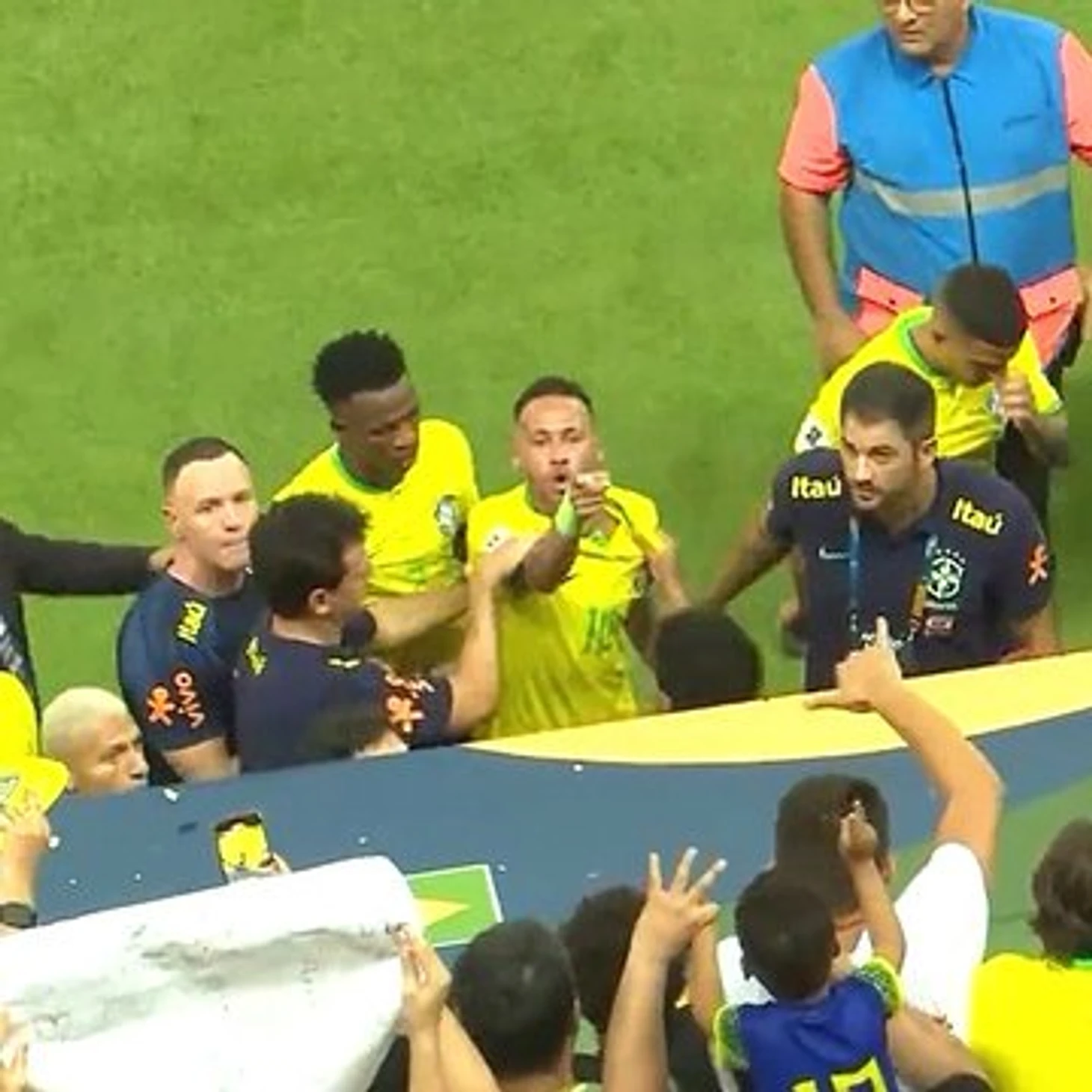 Так или почти так пообщались Неймар и президент КБФ Эдналдо Родригес. Как сообщают источники,после того как в лидера сборной кинули с трибун ведерком попкорна, в подтрибунных помещениях Неймар неоднократно назвал Эдналдо Родригеса «сукиным сыном», посоветовал президенту «пойти в задницу» и в жёсткой форме высказал, что тому «не следовало везти Селесао в это **ное место». Неймар даже пригрозил не поехать в Монтевидео на игру против Уругвая. Уж не знаю насколько верить этому подкасту,но очень верится. Вообще конечно гениально повезти сборную в Куябу в октябре. Перед матчем все только и говорили о жаре. Забил в гугл динамику погоды в столице Мату-Гроссу -хм,с 2018 года самый холодный день +33,самый жаркий +45. Возникает вопрос -зачем было выбирать такое место проведения? Такое ощущение,что федерация выбирает дислокацию просто наугад. Была информация,что на Аргентину в ноябре было 2 варианта -»Морумби» и «Нео Кимика»-и федерация склонялась к домашней арене «Сан-Паулу». В итоге же матч состоится на «Маракане» в Рио. Неплохой такой разбег, плюс-минус пол-локтя по карте. Был и остаюсь критиком нынешнего руководителя КБФ,это кадр просто не поддающийся логике и анализу. Даже обычно спокойный Эдерсон не выдержал и покритиковал Эдналдо за проплешины на трибунах вследствие дорогих билетов. Как минимум 3 тысячи билетов остались в кассах,зато выручка была хорошей. Любовь торсиды этим точно не завоюешь.