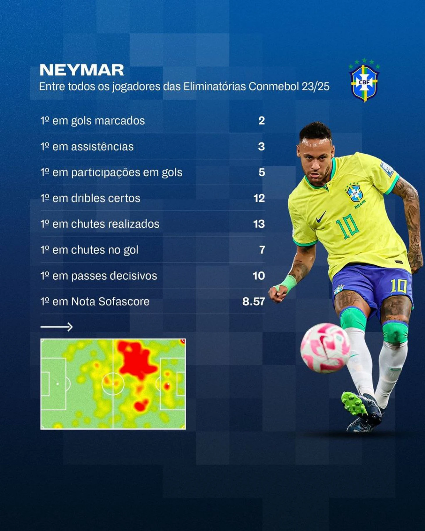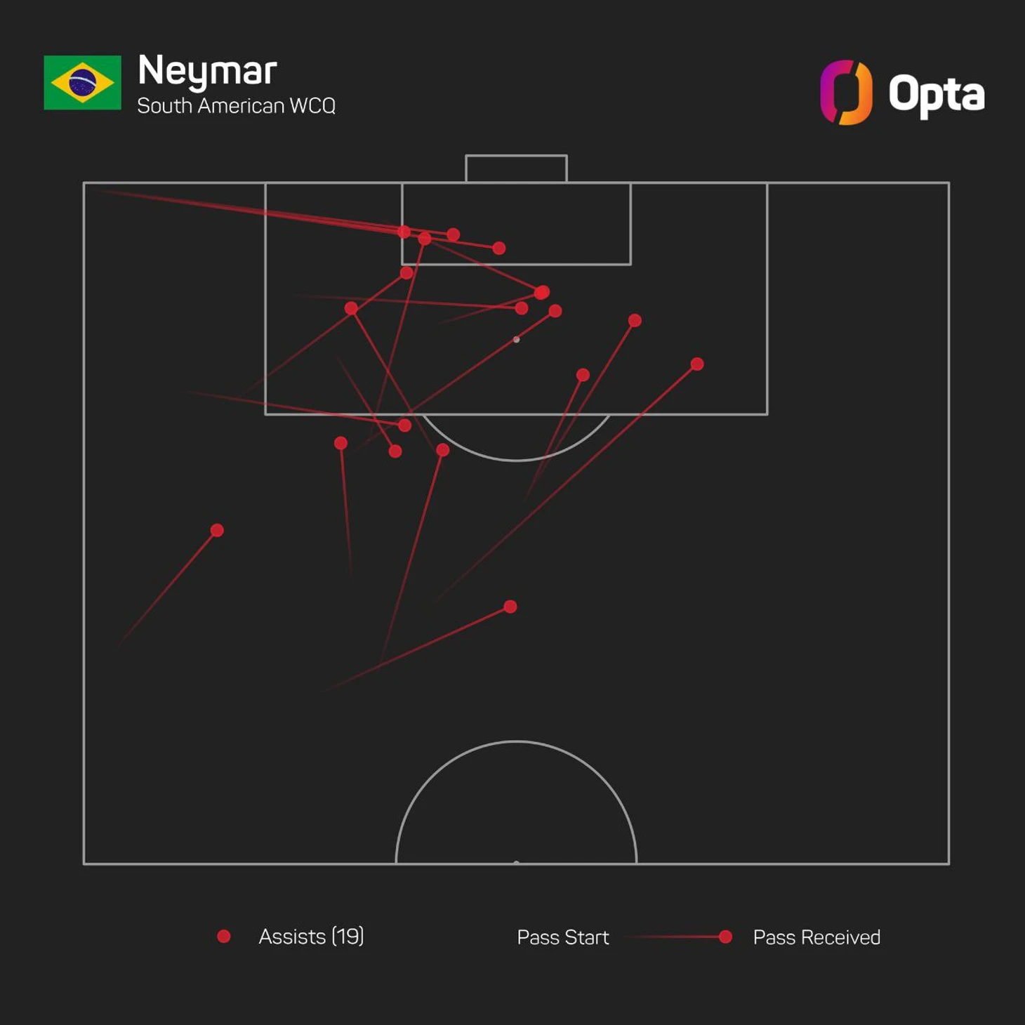 Неймар снова был лучшим игроком Бразилии с кучей оговорок.Но стал лучшим ассистентом отбора в Конмебол в истории. Но он довольно плох в финальном пасе, часто тяжёлый и медленный в касании/пасе и, казалось, затягивал с ударом, когда мог. То ли уровень расслабона в саудовской лиге настолько велик,что перестраиваться на серьезные рельсы очень и очень сложно. Но он единственная настоящая яркая искра скучного облачного неба того матча.