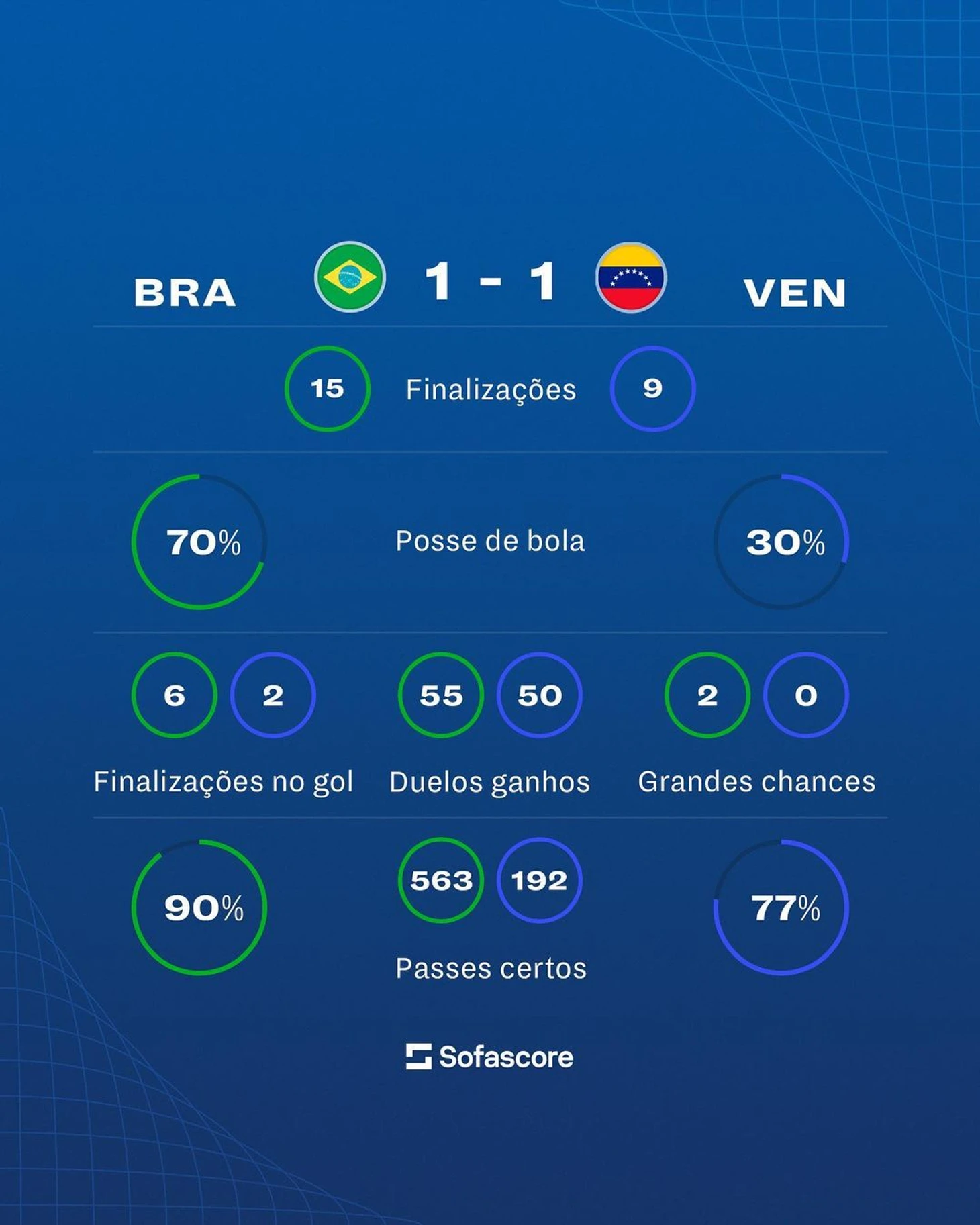 В первые 15 минут Бразилия воспользовалась пространством, оставленным Венесуэлой, неплохи были Родриго, Неймар и Винисиус слева. В начале игры было создано три перспективных момента.
