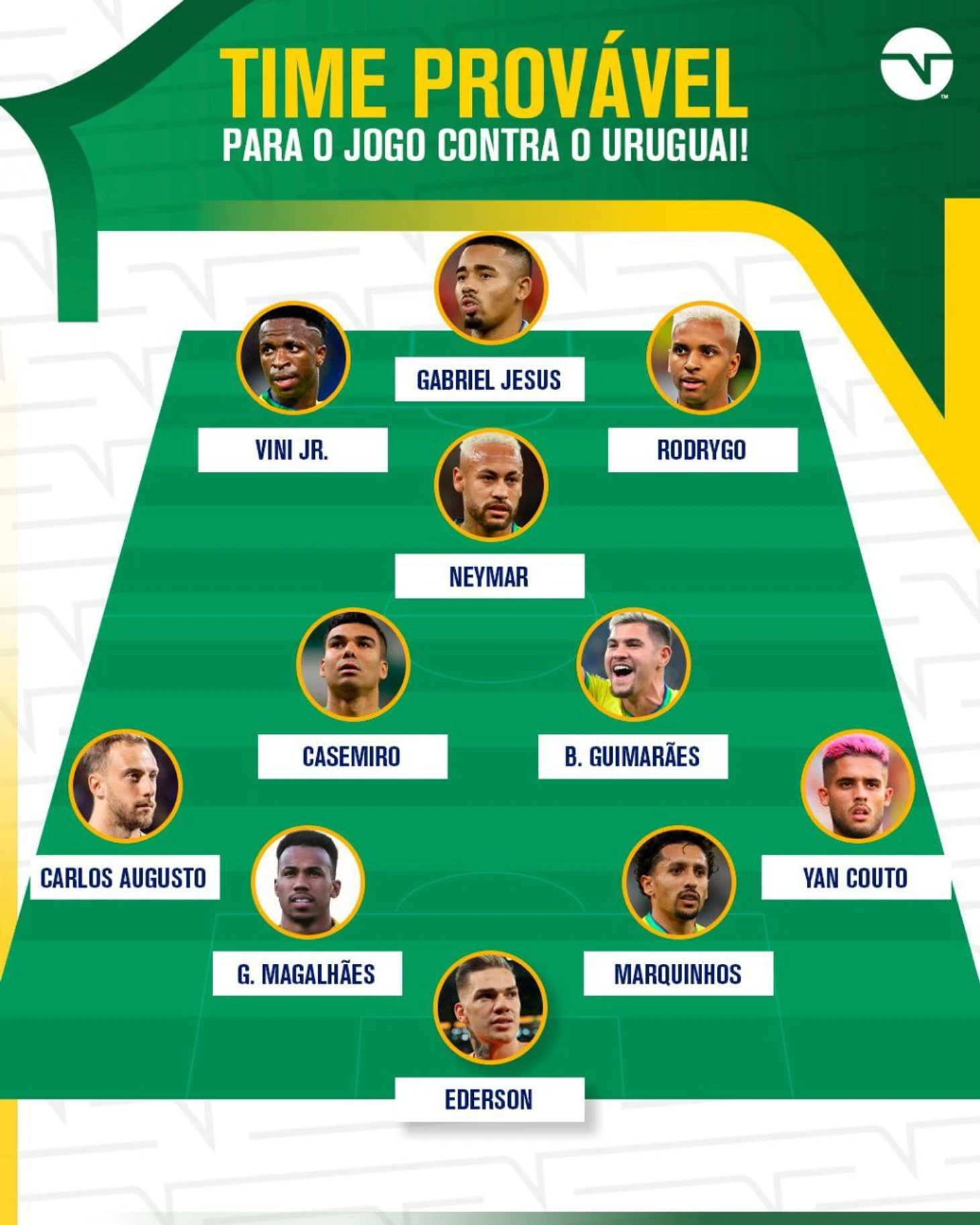 Диниз перед сегодняшним матчем решил произвести 2 замены в старте. Одна напрашивалась давно-вместо Ришарлисона выйдет Габи Жезус. А Арану на левом фланге заменит Карлос Аугусто. Будем надеяться что новичок и дебютант Селесао даст скорости и агрессии на фланге. Может он растормошит Винисиуса? Кстати Аугусто уже четвертый дебютант сборной при Динизе.