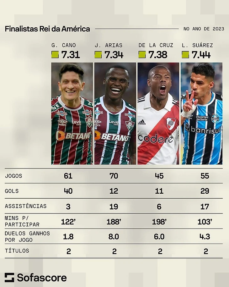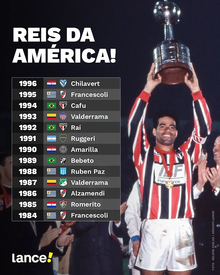Бразильские игроки становились Королями Америки в 11 из 37 голосований El Pais: Бебето (1989), Раи (1992), Кафу (1994), Ромарио (2000), Неймар (2011 и 2012), Роналдиньо Гаушо (2013). , Луан (2017 г.), Габигол (2019 г.), Мариньо (2020 г.) и Педро (2022 г.).