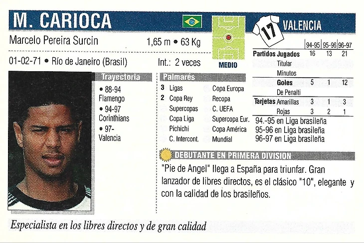 Марселиньо, великолепный атакующий полузащитник и один из нескольких чрезвычайно талантливых футболистов – «дикарей», вышедших из Рио в конце 80-ых, переехал в «Валенсию» летом 1997 года, присоединившись к своему соотечественнику Ромарио .