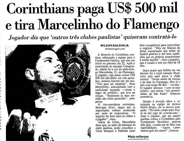Пришел мощный «Коринтианс» из Сан-Паулу. «Помню, я не хотел уходить из «Фламенго», — вспоминал Марселиньо в интервью UOL в 2020 году. — Если бы я сказал вам, что хочу перейти в «Коринтианс», я бы солгал. Я хотел играть только на «Маракане».