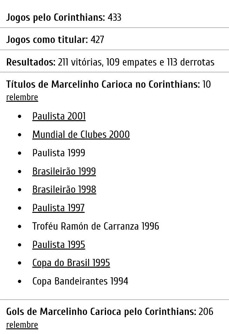 Для болельщиков со стажем 1995 год стал одним из самых важных в истории «Коринтианса». Во многом из-за титулов Паулисты, выигранной у Палмейраса и Кубка Бразилии против «Гремио» Луиса Фелипе Сколари. Это был замечательный год для того, кто станет новым фаворитом торсиды и кто поднимет клуб на новый уровень достижений в ближайшие годы. Это было начало замечательной роли Марселиньо Кариоки в «Коринтиансе».