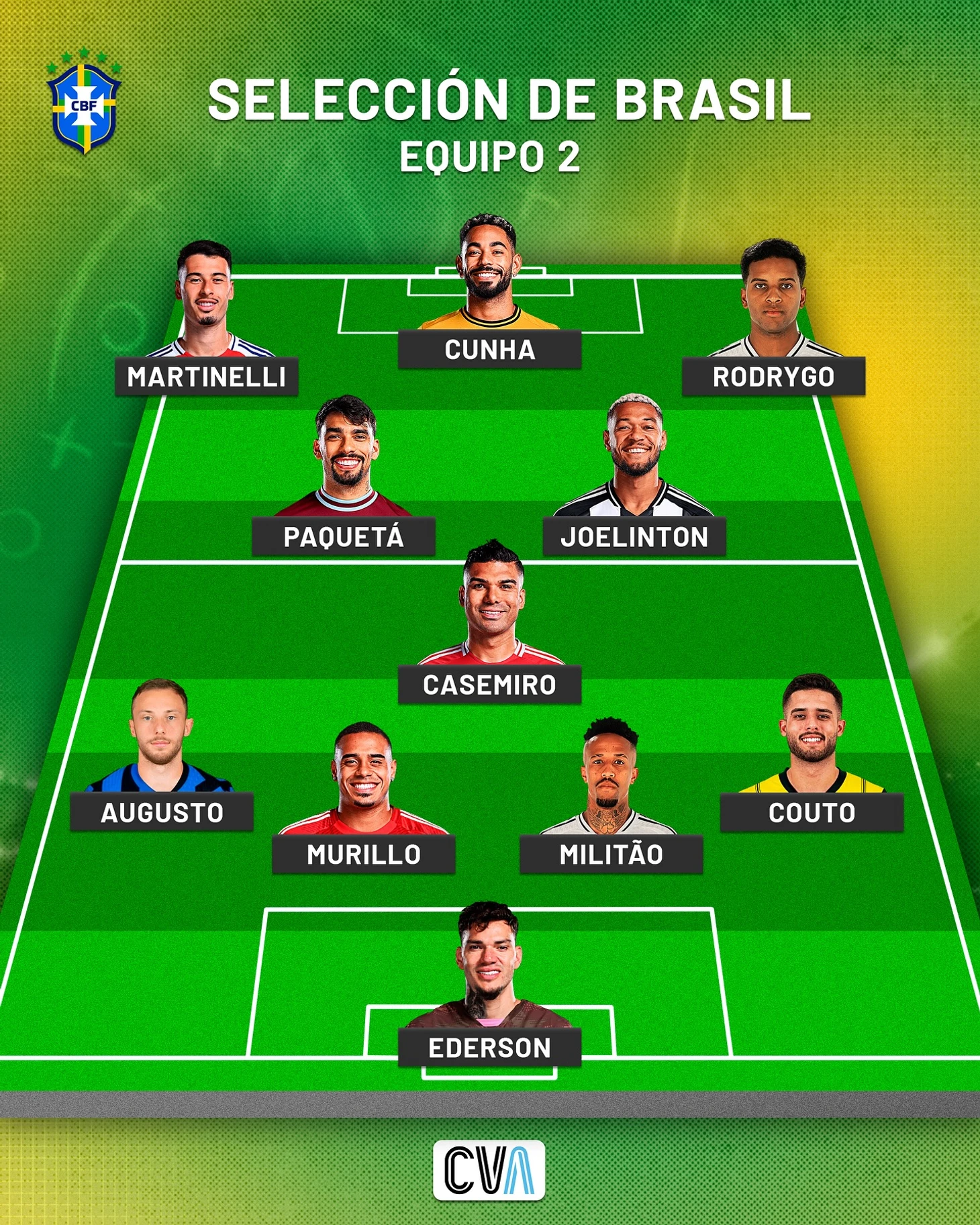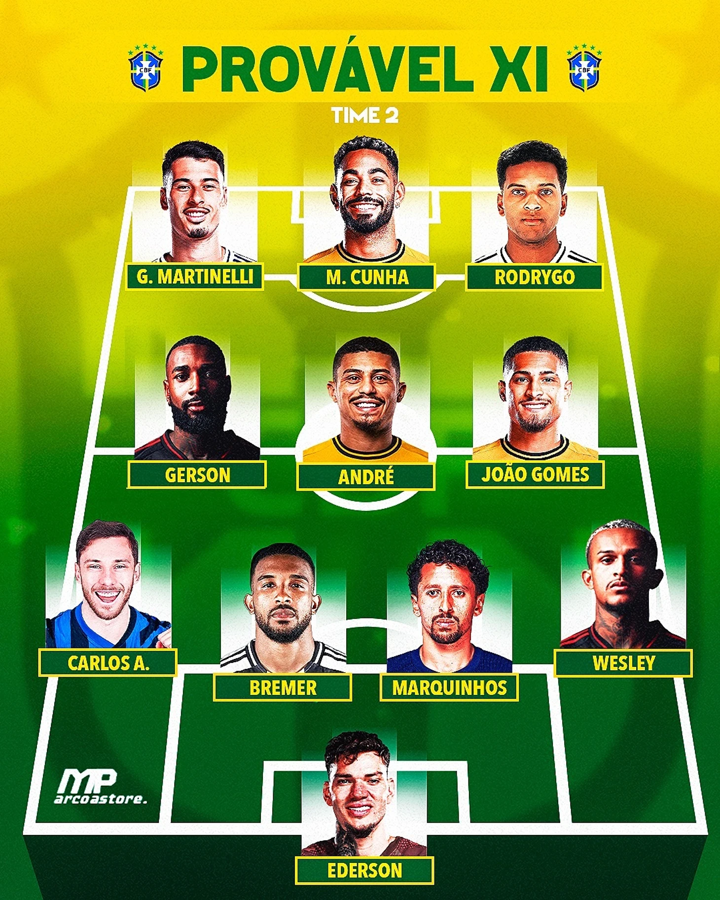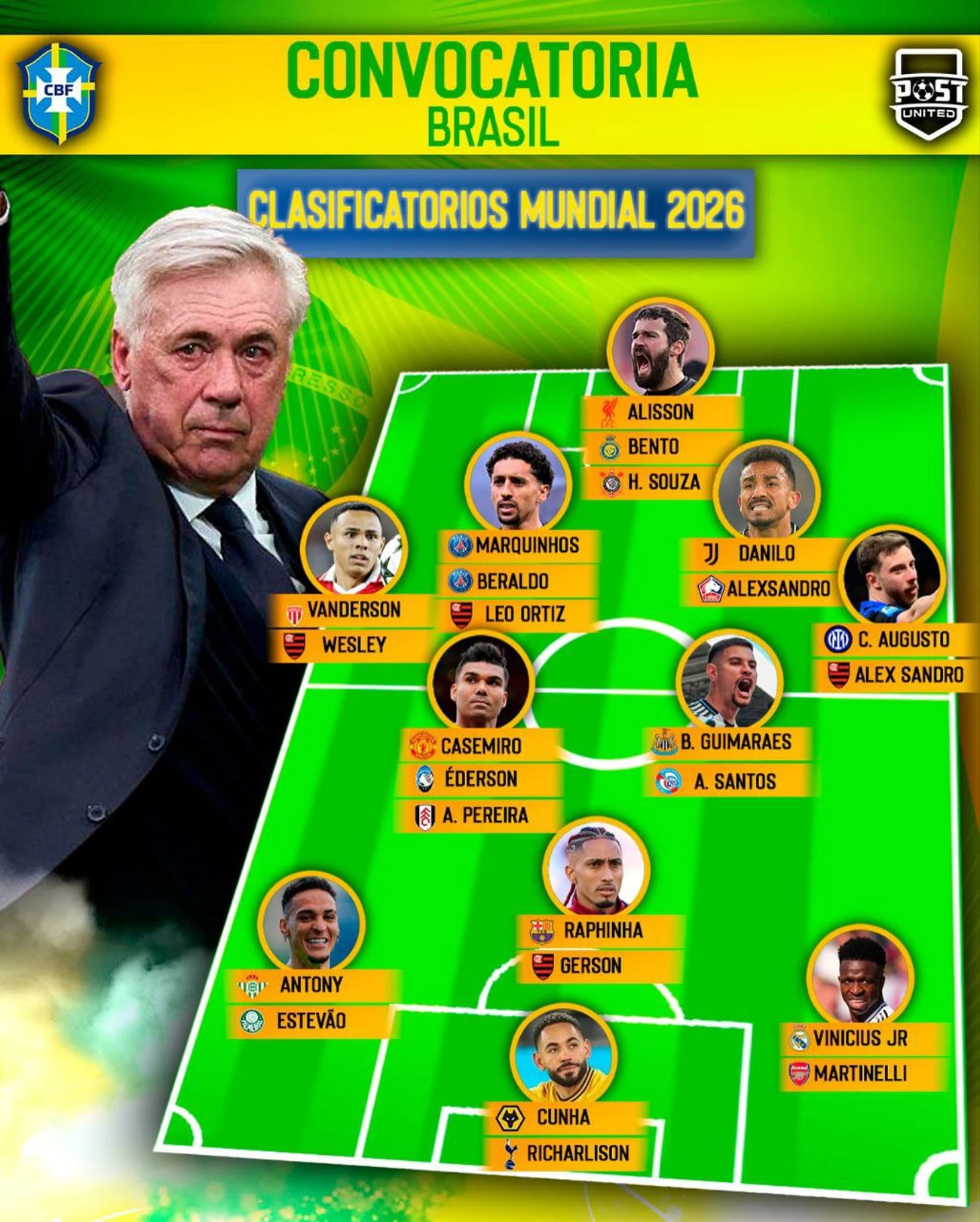Новичок МЮ (зря он это сделал, и дело вовсе не в проклятии Селио Силвы), вероятно начнет с Эквадором в старте. Габи Мартинелли вернулся в сборную, он в отличной форме, и как по мне по потенциалу он куда интереснее Винисиуса. Не везет только с травмами, да и клубные тренеры видят в нем только вингера, хотя по весне его смещения в центр были весьма и весьма опасными. Может быть эксперименты с Габи в роли второго форварда Селесао времен Диниза получат развитие и у Карло.