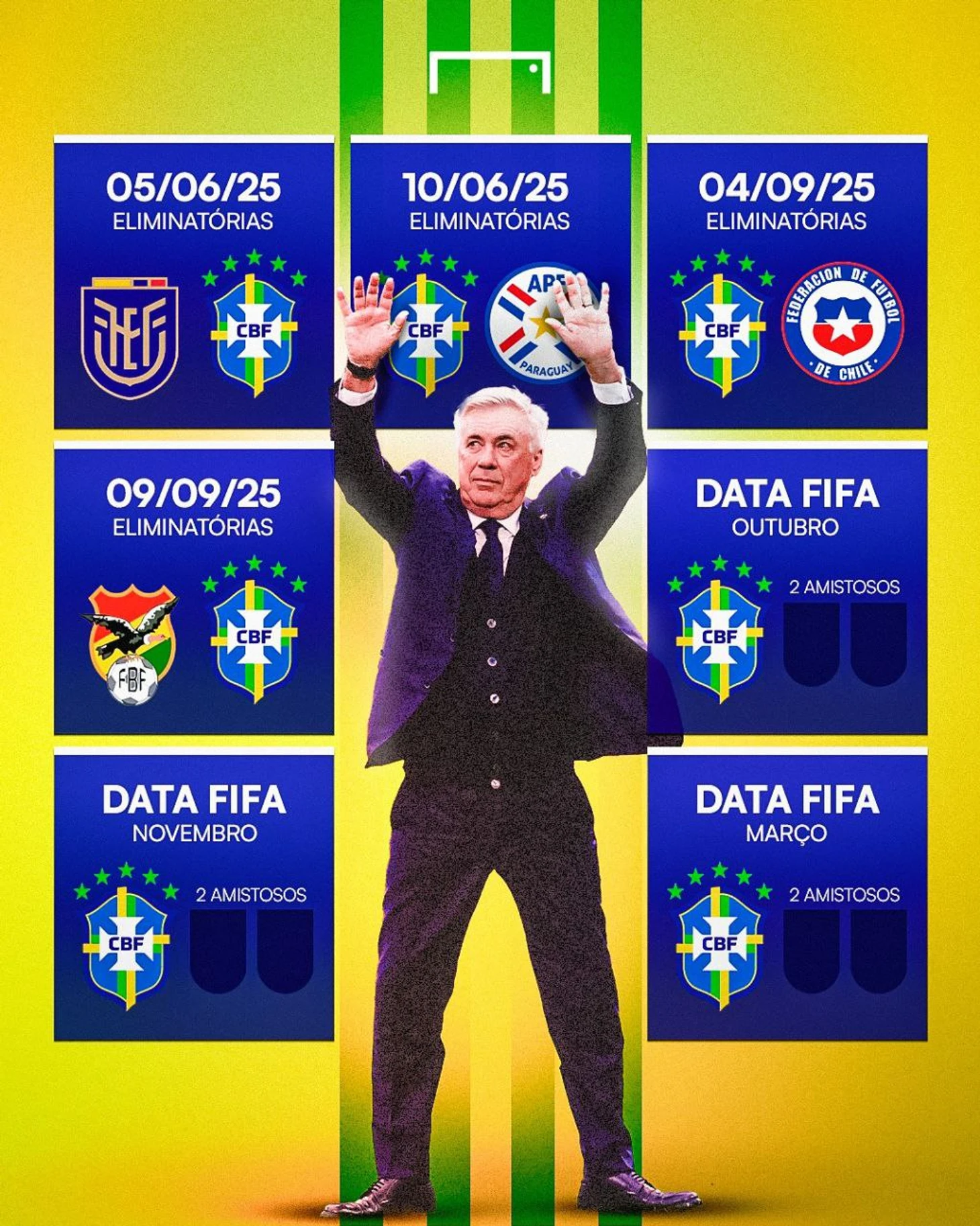 В общем я с интересом жду дебюта Анчелотти. Чудес не жду, но любопытство присутствует. Умеет ли он работать и решать проблемы в сжатые сроки и под давлением? Для итальянца такой вид работы (в сборной) абсолютно новое и неизведанное. Получится ли из этого альянса рывок бразильцев туда, где не были уже 23 года, а именно на футбольный Олимп? Будем посмотреть. Всяко лучше чем лицезреть как Доривал из букв Ж О П А целый год пытался составить слово Гекса.